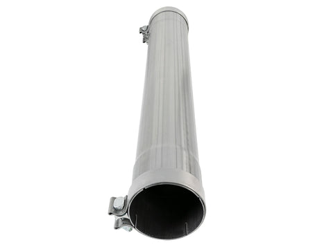 Bring the maximum power out of your exhaust with the aFe Power Muffler-Delete Pipe. This pipe is constructed out of 409 stainless steel and is used to eliminate the 4" In/Out muffler used in most factory or performance 4" exhaust systems. You will love the aggressive exhaust note of a 4" system with no muffler while maximizing exhaust flow, throttle response and performance.Muffler-Delete Pipe Specifications: 4 IN ID x 24 IN L x 30 IN Overall LengthLeak-Free Seal: Includes 2 Torca AccuSeal exhaust clamps for a long-lasting, secure 360-degree sealing surface.Emissions Disclaimer: This product does not require a CARB EO#