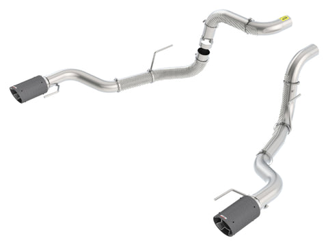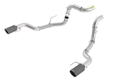 These 3" diameter tail pipes are designed to work with either Borla(r) 60637, 60638, 60731, or 60732 mid-sections / muffler assemblies, or the Original Equipment (O.E.) mid-section / muffler assembly. They feature single 4.5" round carbon fiber tips with black anodized centers on each tail pipe. Tail pipe assemblies with bright chrome on T-304 stainless steel tips, and black chrome on T-304 stainless steel tips are also available. Includes heat shields on pipes. Built from premium T-304 stainless steel, superior to T-400 series knockoffs (such as 409), to give you the absolute best in performance and durability. Ultra-smooth mandrel bends ensure maximum flow & power, and precision computer numerical control (CNC) manufacturing ensures an accurate fit. Best of all, Borla(r) stands behind our tail pipes with a Million-Mile Warranty. Just what you'd expect from the world's most experienced (and most winning) exhaust brand.