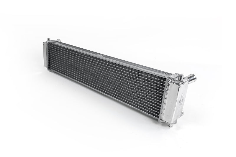 CSF has over 5 decades of experience manufacturing radiators. So when it comes to keeping your engine cool and your 996 911/986 Boxster running at its best, a CSF High-Performance All-Aluminum Radiator is the obvious choice. Designed to perform on the street or at the track, a performance radiator is a must-have for both high horsepower builds as well as race vehicles which need added cooling performance in motorsports environments. This radiator features a 2-Row core with CSF's exclusive B-Tube Technology: Unlike a regular oval shape "O" type radiator tube, CSF uses a specially engineered tube in the shape of a "B". These "B-tubes" are carefully formed and then brazed over the seam to seal. CSF is able to use thinner and lighter aluminum material (with better cooling efficiency) because this design is actually stronger than normal "O" shape tubes that are welded. The design (inlet in the middle of the tube that is seam brazed) increases the heat transfer surface area of the tubes by approximately 15% over regular tubes - producing the efficiency of two smaller tubes vs. one large tube within the same space criteria. With "B-tubes" you are able to get "dual liquid laminar flow". CSF also uses ultra efficient multi louvered fins that are carefully and precisely aligned to maximize airflow through each radiator core. Fin specifications are carefully measured and calculated for each application, and tested for maximum heat rejection efficiency in our wind-tunnel lab.