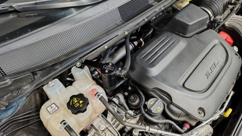 During the process of venting crankcase pressure back through your intake track, large amounts of oil, in the form of vapors can gather/accumulate in your intake tube, intake manifold runners and even dilute your gas, lowering its octane level. This happens on all engines and is even worse with forced inducted vehicles (supercharged and turbocharged) as crankcase pressures are increased. To combat this, we have developed an oil separator of our own design. Milled from solid billet aluminum this is a rock-solid piece. It has a knurled tank base for easy removal to drain the spent oil and an O-ring seal to prevent any leaks. Filtering consists of a fine mesh stainless steel screen that traps fine oil vapors and releases them once heavy enough to fall. They then pass through a 1/2" thick 1/16th" aluminum honeycomb filter where they grow every larger and then fall into the bottom. By the time the oil gets through the filter it's too heavy to be passed on into the intake. The tank holds 3 oz of fluid, while that may not sound like a lot, you shouldn’t see that much oil in your PCV system. Drain it every 2000-3000 miles and you will never come close to filling it.