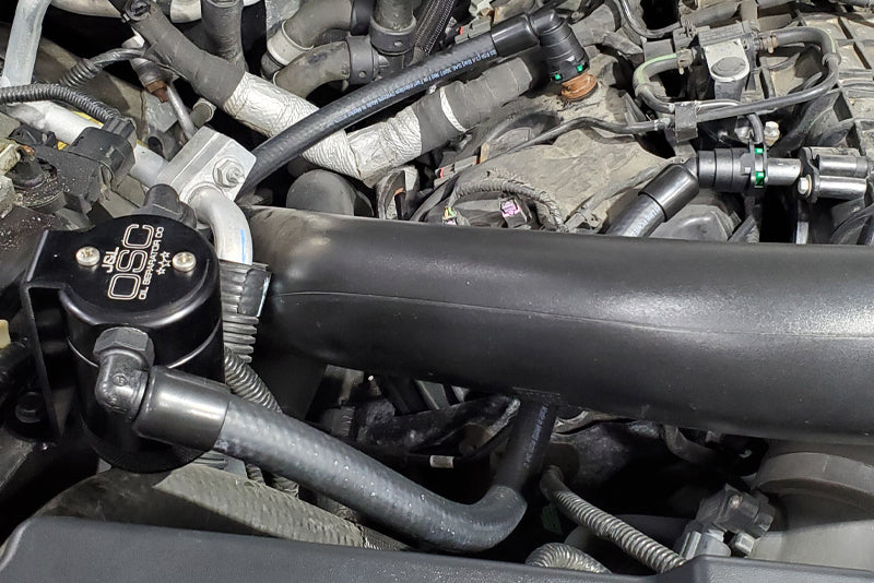 During the process of venting crankcase pressure back through your intake track, large amounts of oil, in the form of vapors can gather/accumulate in your intake tube, intake manifold runners and even dilute your gas, lowering its octane level. This happens on all engines and is even worse with forced inducted vehicles (supercharged and turbocharged) as crankcase pressures are increased. To combat this, we have developed an oil separator of our own design. Milled from solid billet aluminum this is a rock-solid piece. It has a knurled tank base for easy removal to drain the spent oil and an O-ring seal to prevent any leaks. Filtering consists of a fine mesh stainless steel screen that traps fine oil vapors and releases them once heavy enough to fall. They then pass through a 1/2" thick 1/16th" aluminum honeycomb filter where they grow every larger and then fall into the bottom. By the time the oil gets through the filter it's too heavy to be passed on into the intake. The tank holds 3 oz of fluid, while that may not sound like a lot, you shouldn’t see that much oil in your PCV system. Drain it every 2000-3000 miles and you will never come close to filling it.