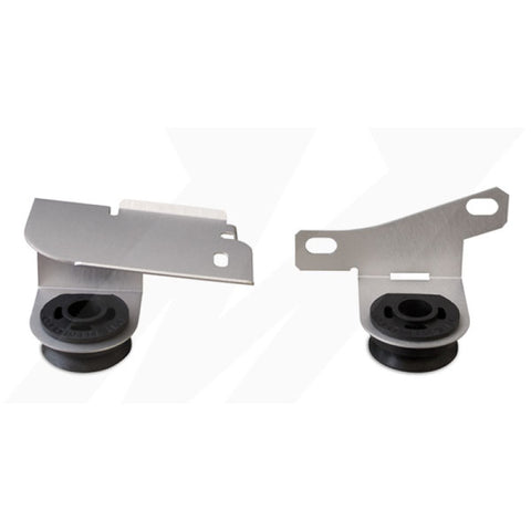 Mishimoto has developed Ford Mustang aluminum radiator stays to replace the OEM upper radiator brackets.These are a must have for any Mustang owner looking to install an aftermarket radiator.The stock OEM Ford brackets have a rigid design that does not allow them to bend and move in harmony with the Mustang's uni-body when it is being torqued under hard driving conditions.These forces combined with the Mustang's rigid upper radiator brackets cause performance aluminum radiators to crack and leak.The Mishimoto Ford Mustang radiator stays are made out of thin gauge aluminum and use a softer rubber bushing, allowing the bracket to bend and move with the radiator, thus preventing damage.Designed to fit both OEM and aftermarket radiators.Made in USA