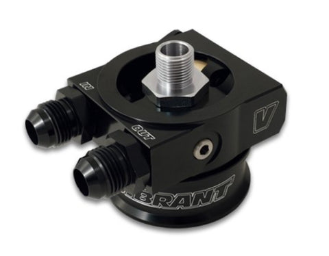 Vibrant's new Oil Cooler Sandwich Adapters bypass hot oil through a cooling loop to help you keep your critical engine oil temperatures under control and allows you to retain your stock oil filter location. Each kit includes a Universal Thermostatic Oil Cooler Sandwich Adapter with Spacer, five (5) Oil Filter adapter bolts (M18 x 1.5, M20 x 1.5, M22 x 1.5, 3/4 in.-16 and 13/16 in.-16), pair of -10 AN inlet / outlet Male Flare adapters and O-Ring seals.